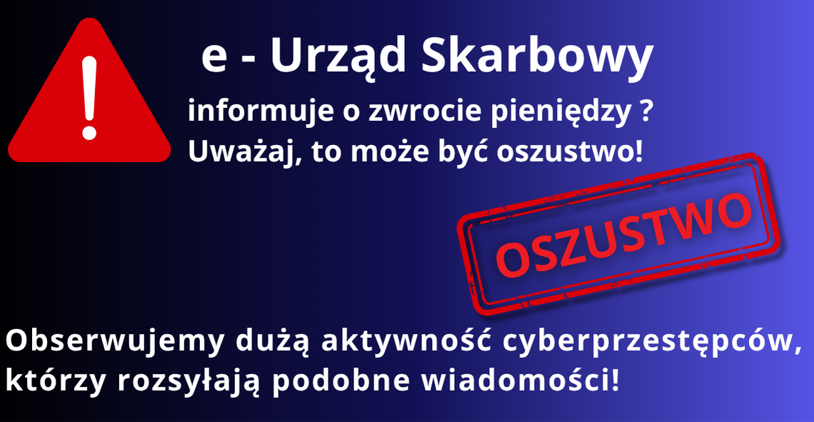 e-Urząd Skarbowy informuje o zwrocie pieniędzy? Uważaj, to może być oszustwo! W ostatnich tygodniach obserwujemy wzmożoną aktywność cyberprzestępców, którzy rozsyłają fałszywe wiadomości e-mail i SMS-y podszywające się pod e-Urząd Skarbowy.Celem tych kampanii jest wyłudzenie danych…